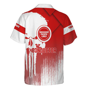 Railspirit Personalized Missouri Pacific Railroad Hawaiian Shirt Skull Design with Custom Job Train Shirt for Trackhead Crew