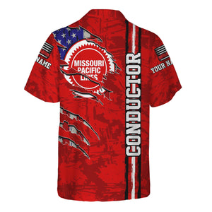 Railspirit Personalized Missouri Pacific Railroad Hawaiian Shirt USA Flag Claw Art with Custom Job Train Shirt