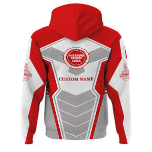 Railspirit Personalized Missouri Pacific Railroad Hoodie Engine-Inspired Style Train Zip Up Hoodie for Railroad Fanatic