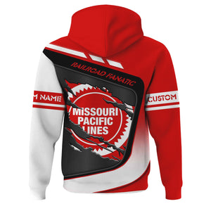 Railspirit Personalized Missouri Pacific Railroad Hoodie Ripped Texture Style Train Zip Up Hoodie For Railroad Fanatic