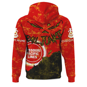 Railspirit Personalized Missouri Pacific Railroad Hoodie Torn Graphic Style Train Zip Up Hoodie For Rail Junkie