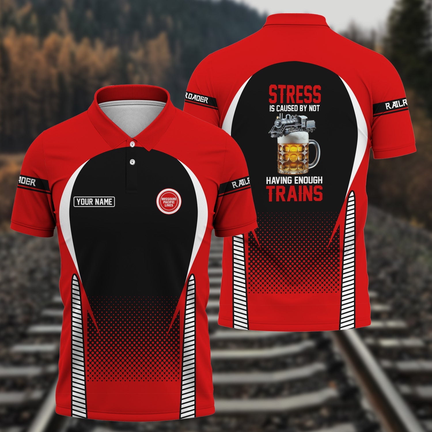 Railspirit Personalized Missouri Pacific Railroad Polo Shirt Stress Is Caused By Not Having Enough Trains Shirt All Over Print