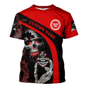 Railspirit Personalized Missouri Pacific Railroad T-Shirt Flame Skull Design Train Shirt for Locomotive Fans