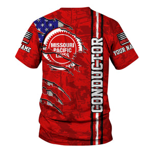 Railspirit Personalized Missouri Pacific Railroad T-Shirt USA Flag Claw Art with Custom Job Train Shirt