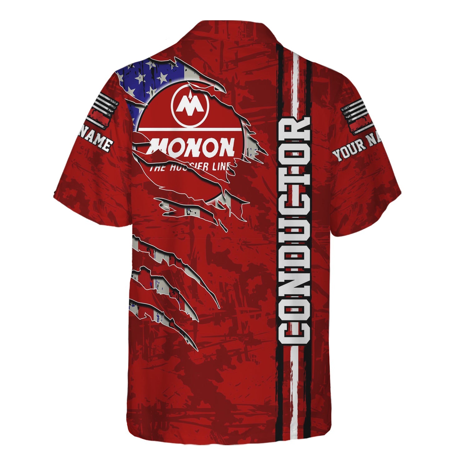 Railspirit Personalized Monon Railroad Hawaiian Shirt USA Flag Claw Art with Custom Job Train Shirt