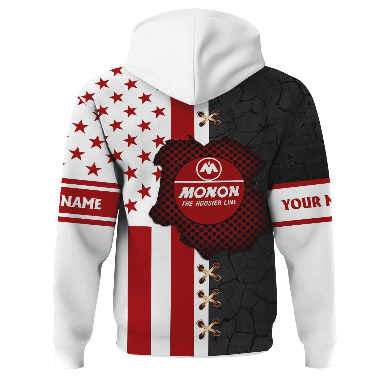 Railspirit Personalized Monon Railroad Hoodie American Flag with Crack Effect Train Zip Up Hoodie