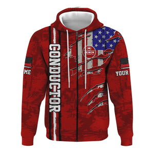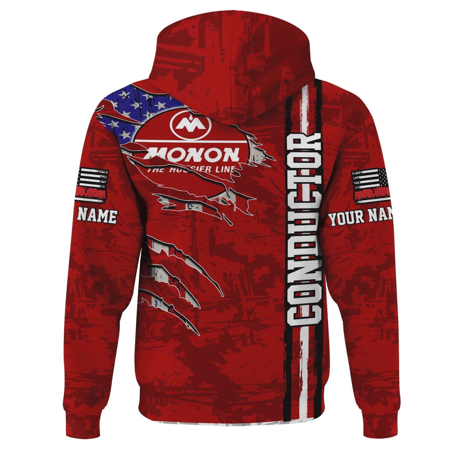 Railspirit Personalized Monon Railroad Hoodie USA Flag Claw Art with Custom Job Train Zip Up Hoodie