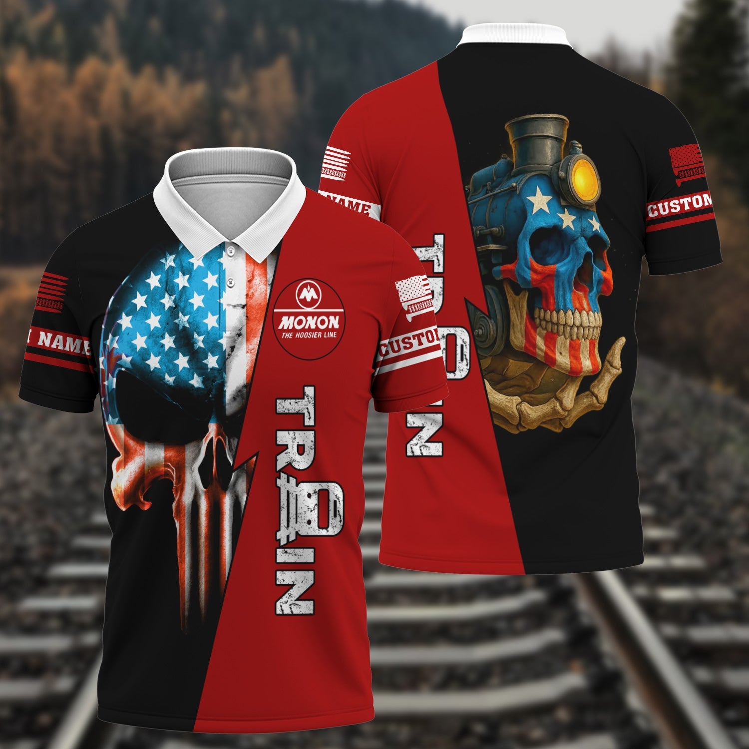 Railspirit Personalized Monon Railroad Polo Shirt Train Skull American Flag Shirt All Over Print