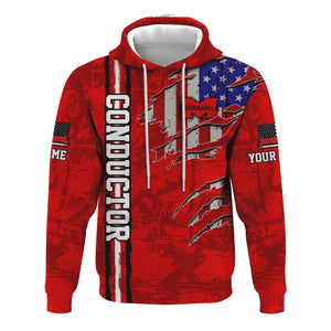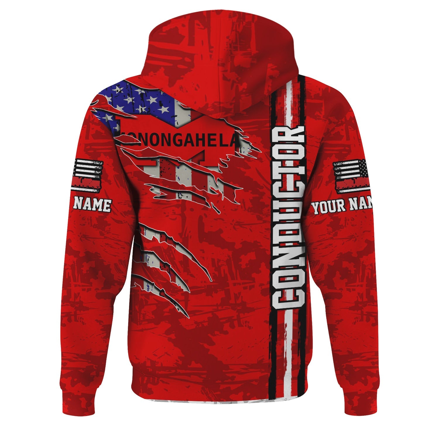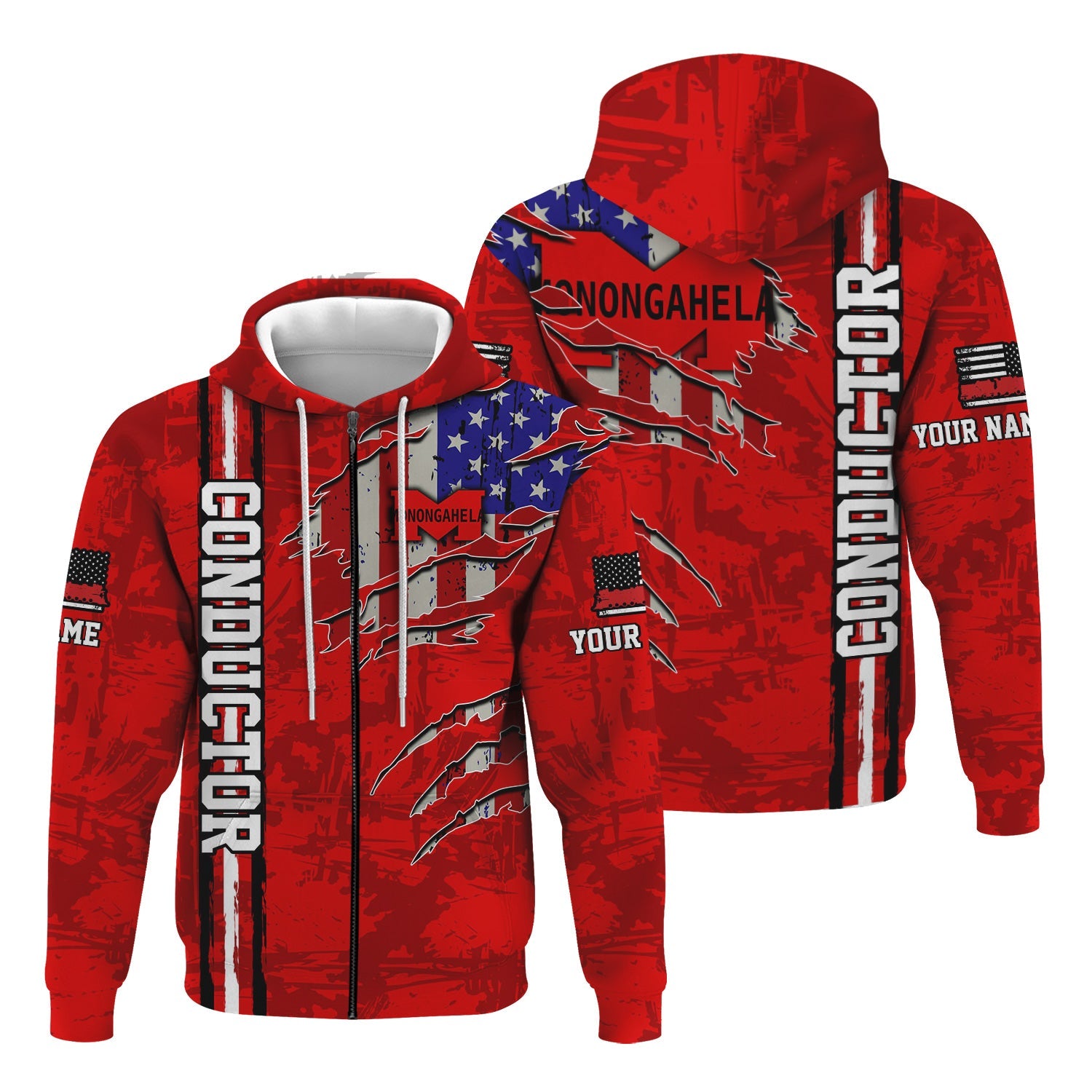 Railspirit Personalized Monongahela Railroad Hoodie USA Flag Claw Art with Custom Job Train Zip Up Hoodie