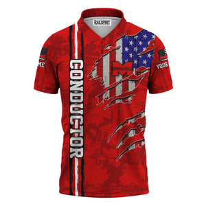 Railspirit Personalized Monongahela Railroad Polo Shirt USA Flag Claw Art with Custom Job Train Shirt