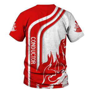 Railspirit Personalized Monongahela Railroad T-Shirt Flame Design with Custom Job Position Train Shirt