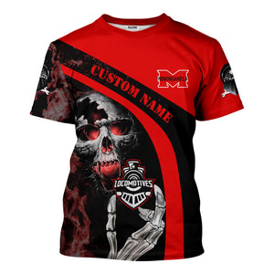Railspirit Personalized Monongahela Railroad T-Shirt Flame Skull Design Train Shirt for Locomotive Fans