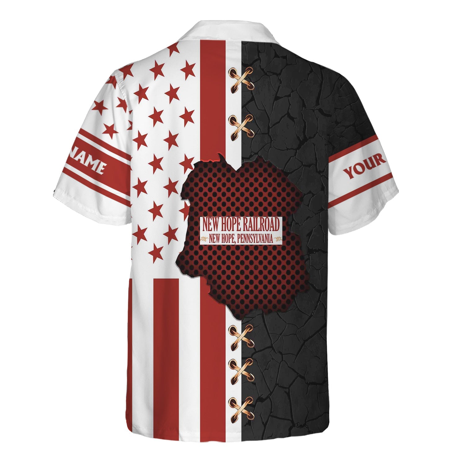 Railspirit Personalized New Hope Railroad Hawaiian Shirt American Flag with Crack Effect Train Shirt
