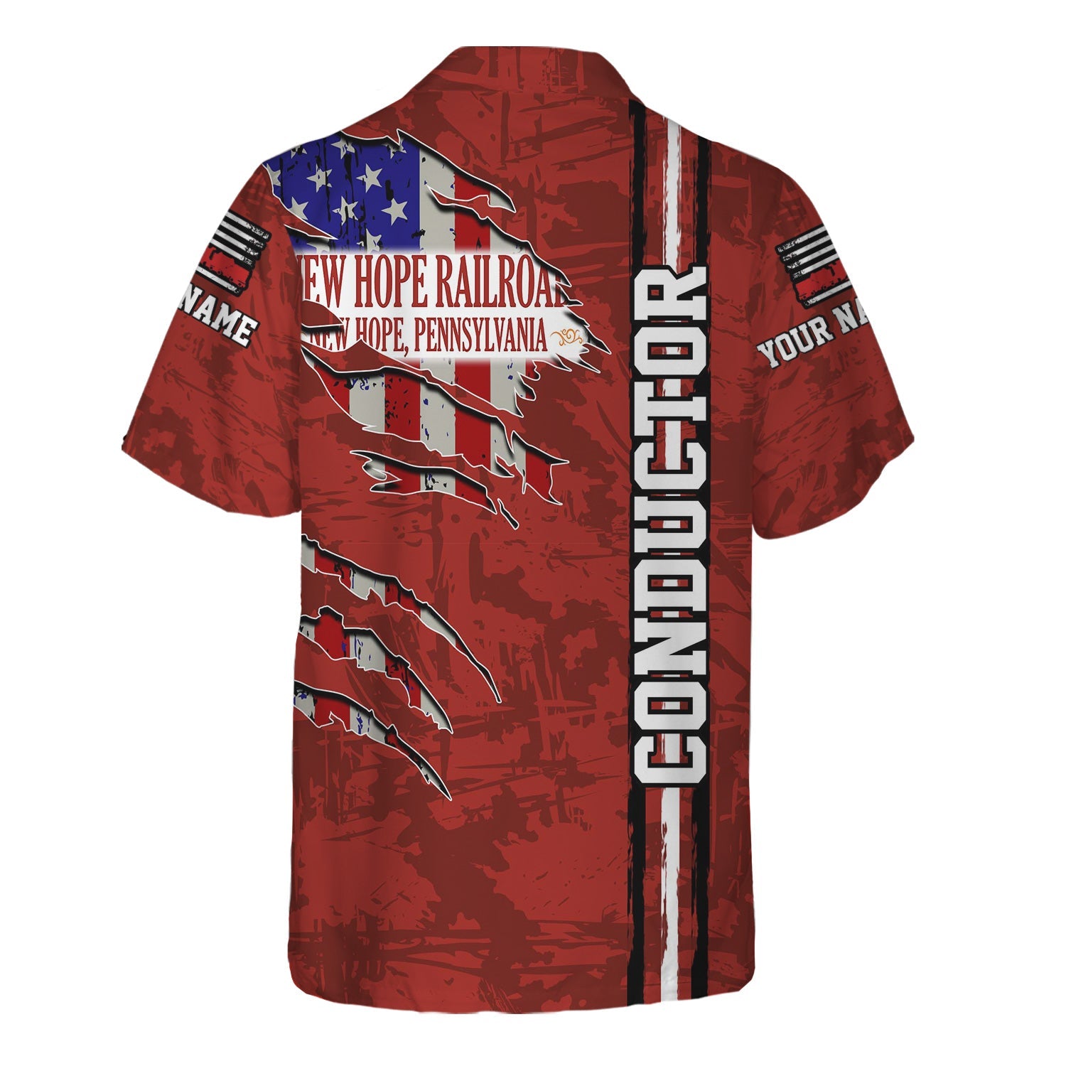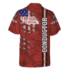 Railspirit Personalized New Hope Railroad Hawaiian Shirt USA Flag Claw Art with Custom Job Train Shirt