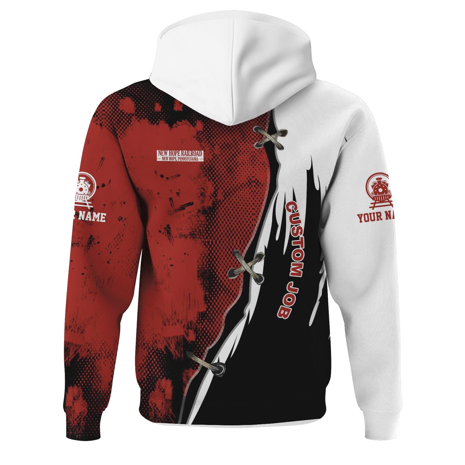 Railspirit Personalized New Hope Railroad Hoodie Retro Stitches Design with Custom Position Train Zip Up Hoodie
