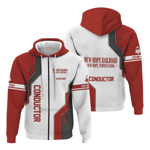Railspirit Personalized New Hope Railroad Hoodie Unique Railway Style with Custom Job Train Zip Up Hoodie