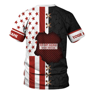 Railspirit Personalized New Hope Railroad T-Shirt American Flag with Crack Effect Train Shirt