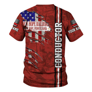 Railspirit Personalized New Hope Railroad T-Shirt USA Flag Claw Art with Custom Job Train Shirt