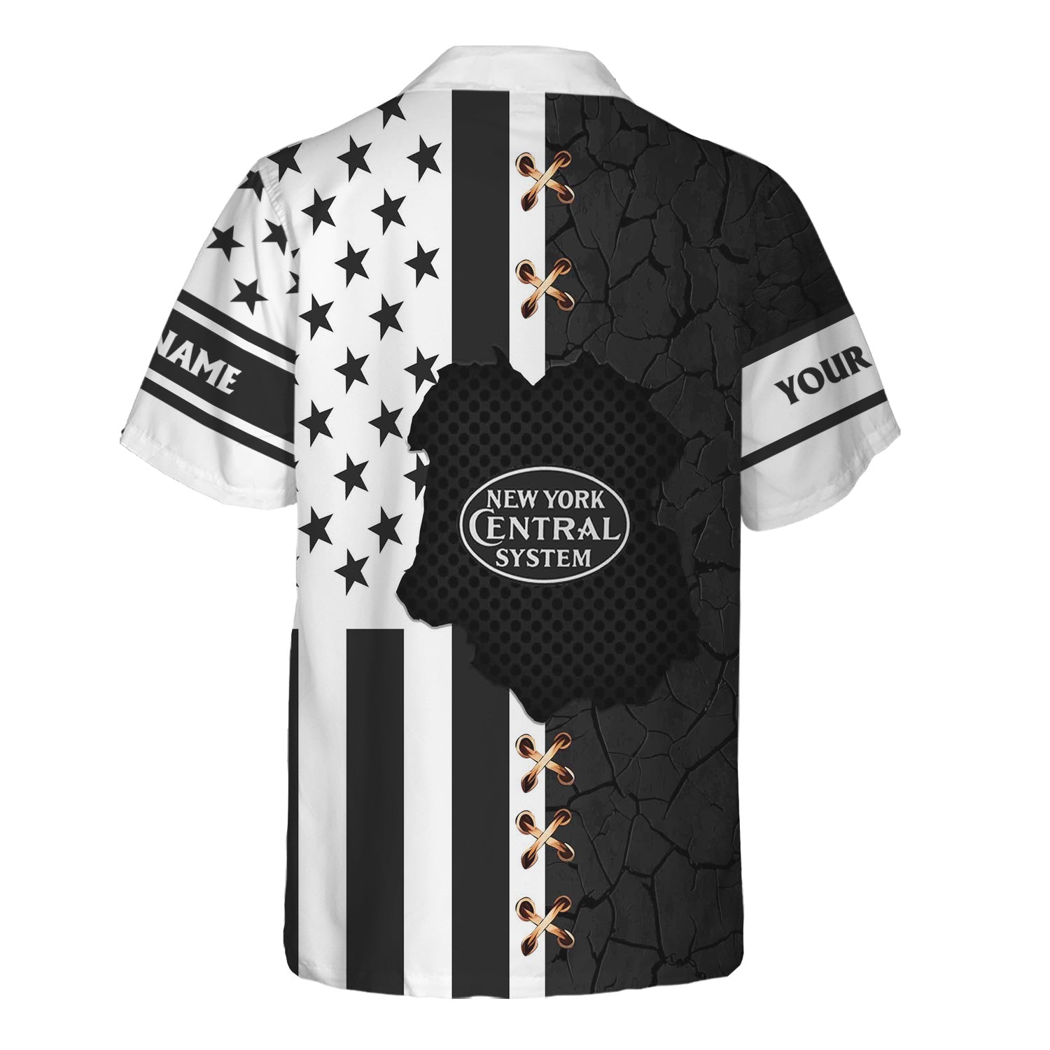 Railspirit Personalized New York Central Railroad Hawaiian Shirt American Flag with Crack Effect Train Shirt