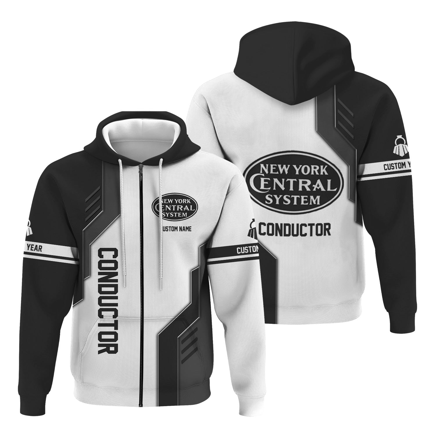 Railspirit Personalized New York Central Railroad Hoodie Unique Railway Style with Custom Job Train Zip Up Hoodie