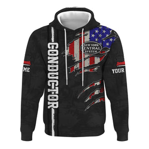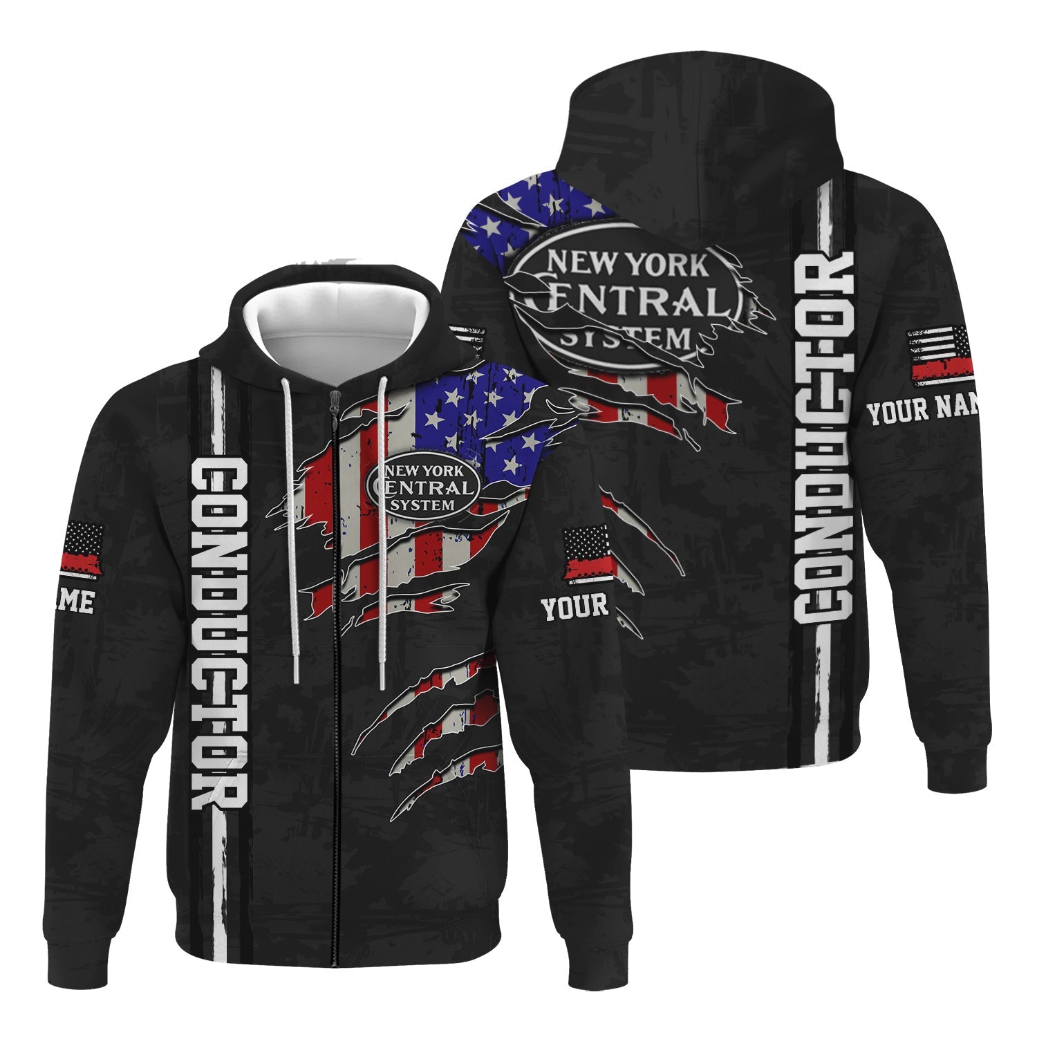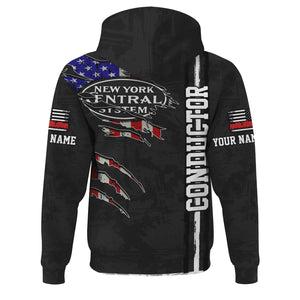 Railspirit Personalized New York Central Railroad Hoodie USA Flag Claw Art with Custom Job Train Zip Up Hoodie