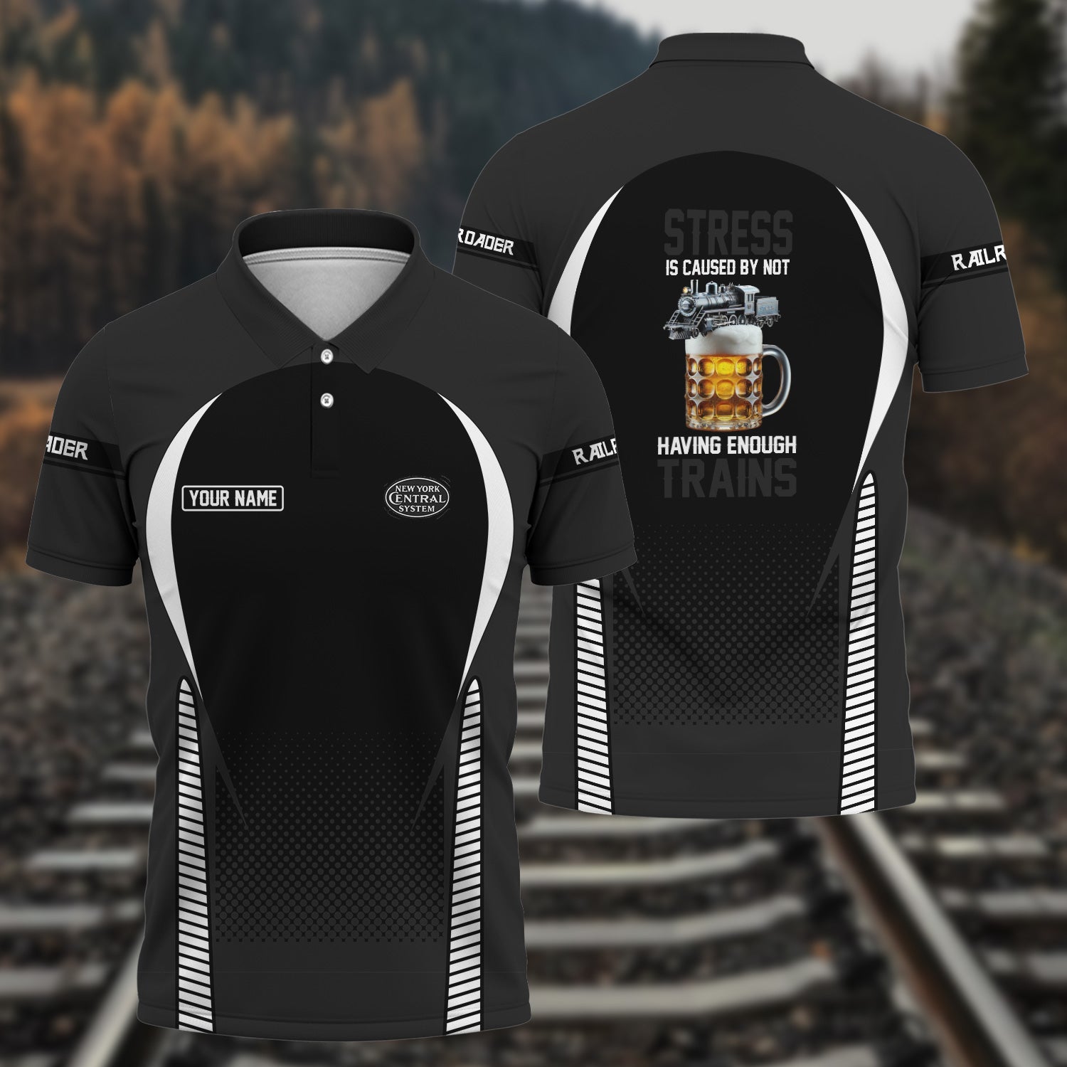 Railspirit Personalized New York Central Railroad Polo Shirt Stress Is Caused By Not Having Enough Trains Shirt All Over Print