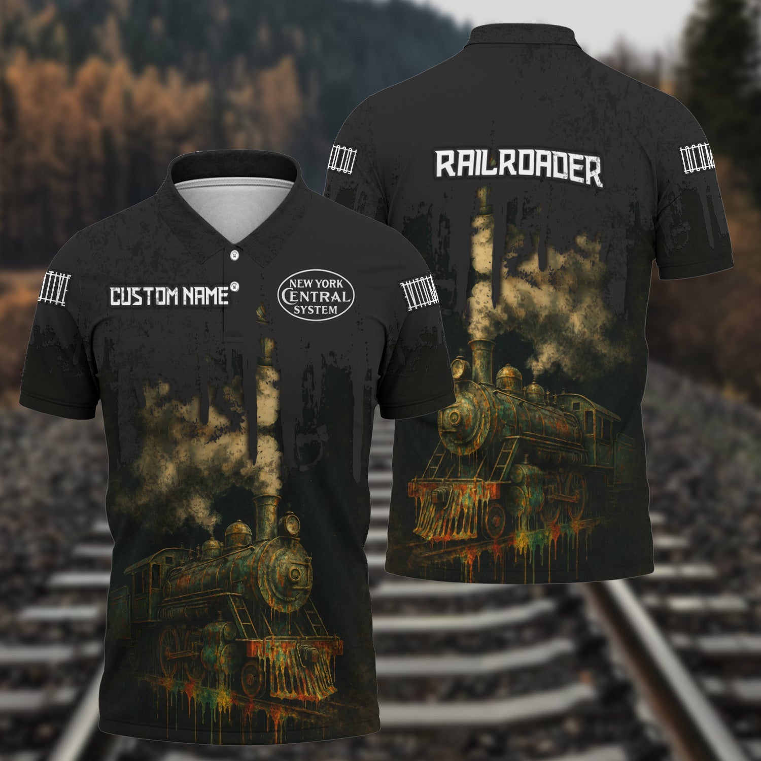 Railspirit Personalized New York Central Railroad Polo Shirt Vintage Train Art Style Shirt For Locomotive Fans