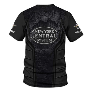 Railspirit Personalized New York Central Railroad T-Shirt Cracked Metal Design Train Shirt for Rail Enthusiasts