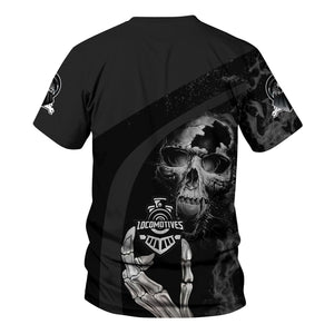 Railspirit Personalized New York Central Railroad T-Shirt Flame Skull Design Train Shirt for Locomotive Fans
