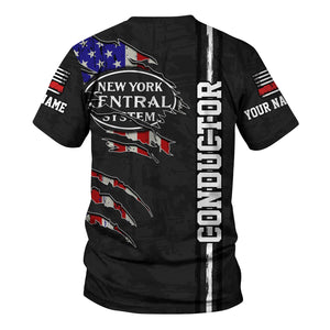 Railspirit Personalized New York Central Railroad T-Shirt USA Flag Claw Art with Custom Job Train Shirt