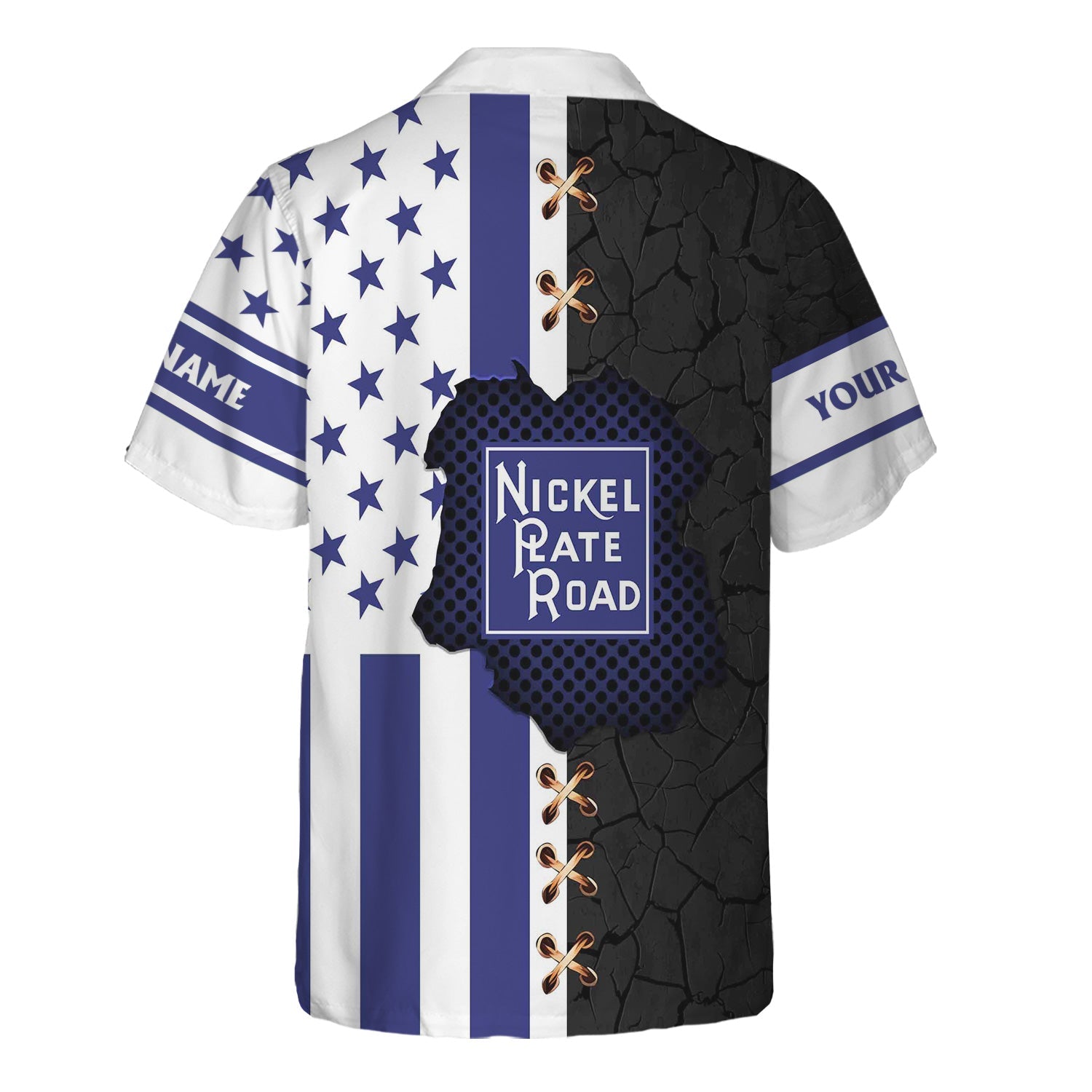 Railspirit Personalized New York, Chicago and St. Louis Railroad Hawaiian Shirt American Flag with Crack Effect Nickel Plate Road Train Shirt