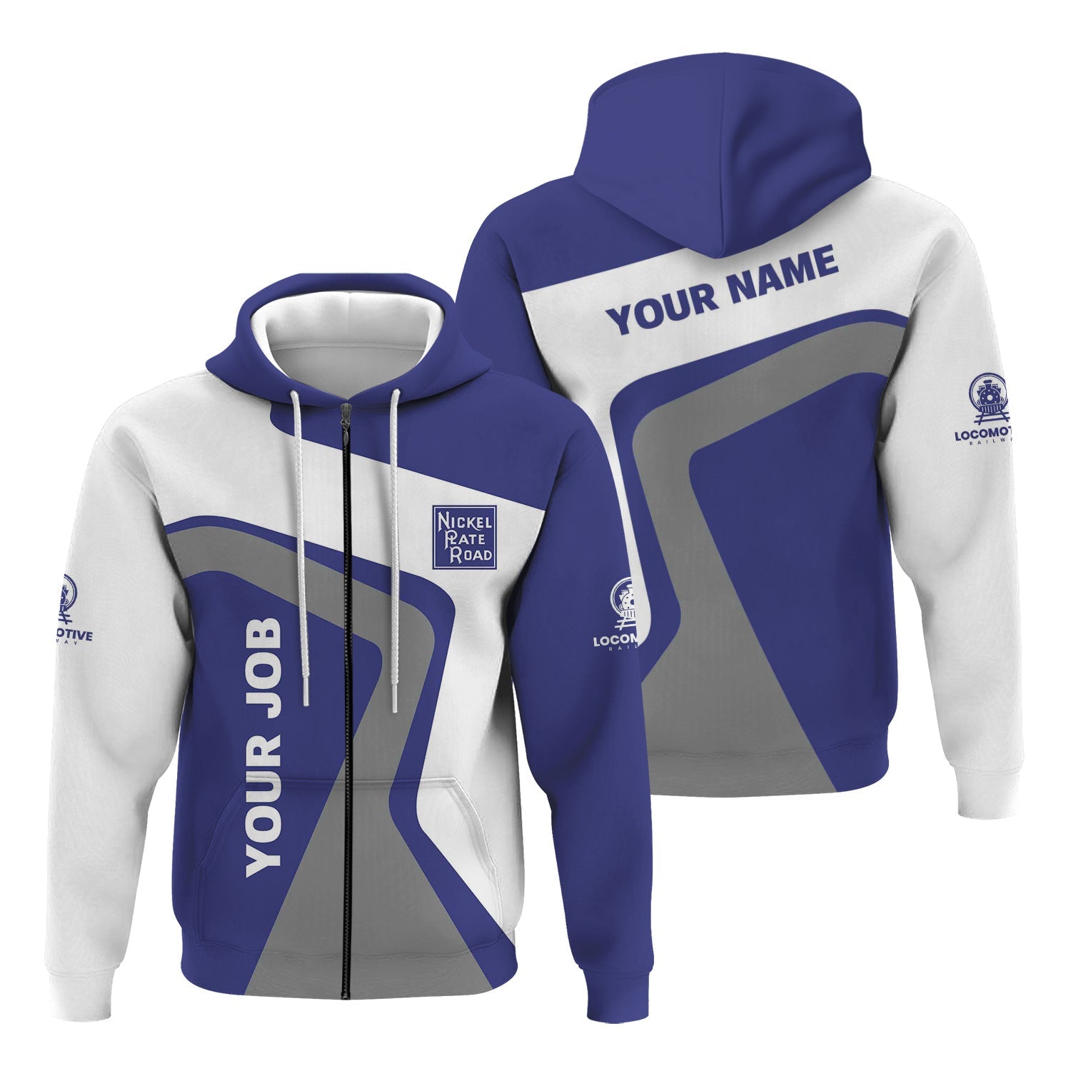 Railspirit Personalized New York, Chicago and St. Louis Railroad Hoodie Unique Design with Custom Job Position Nickel Plate Road Train Zip Up Hoodie