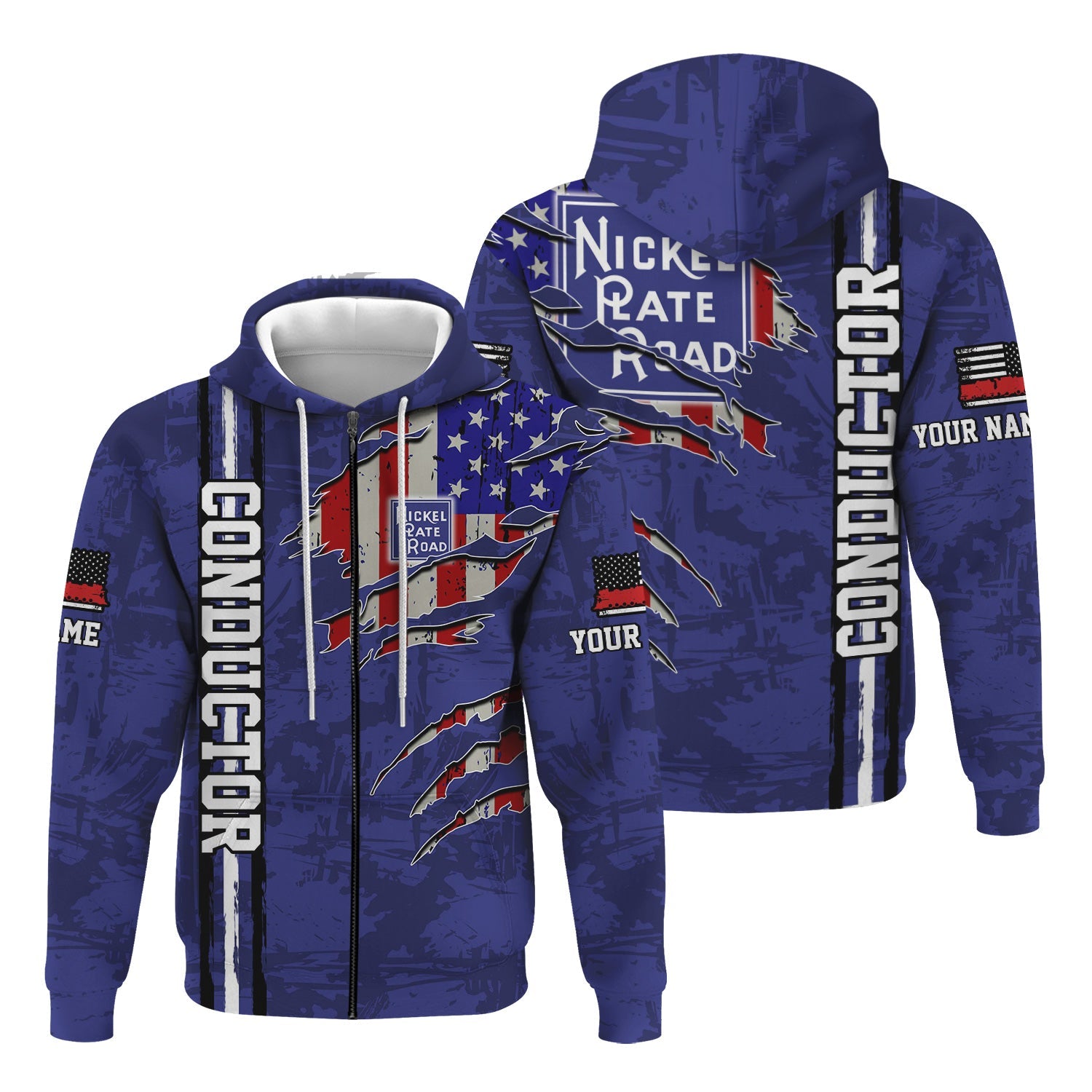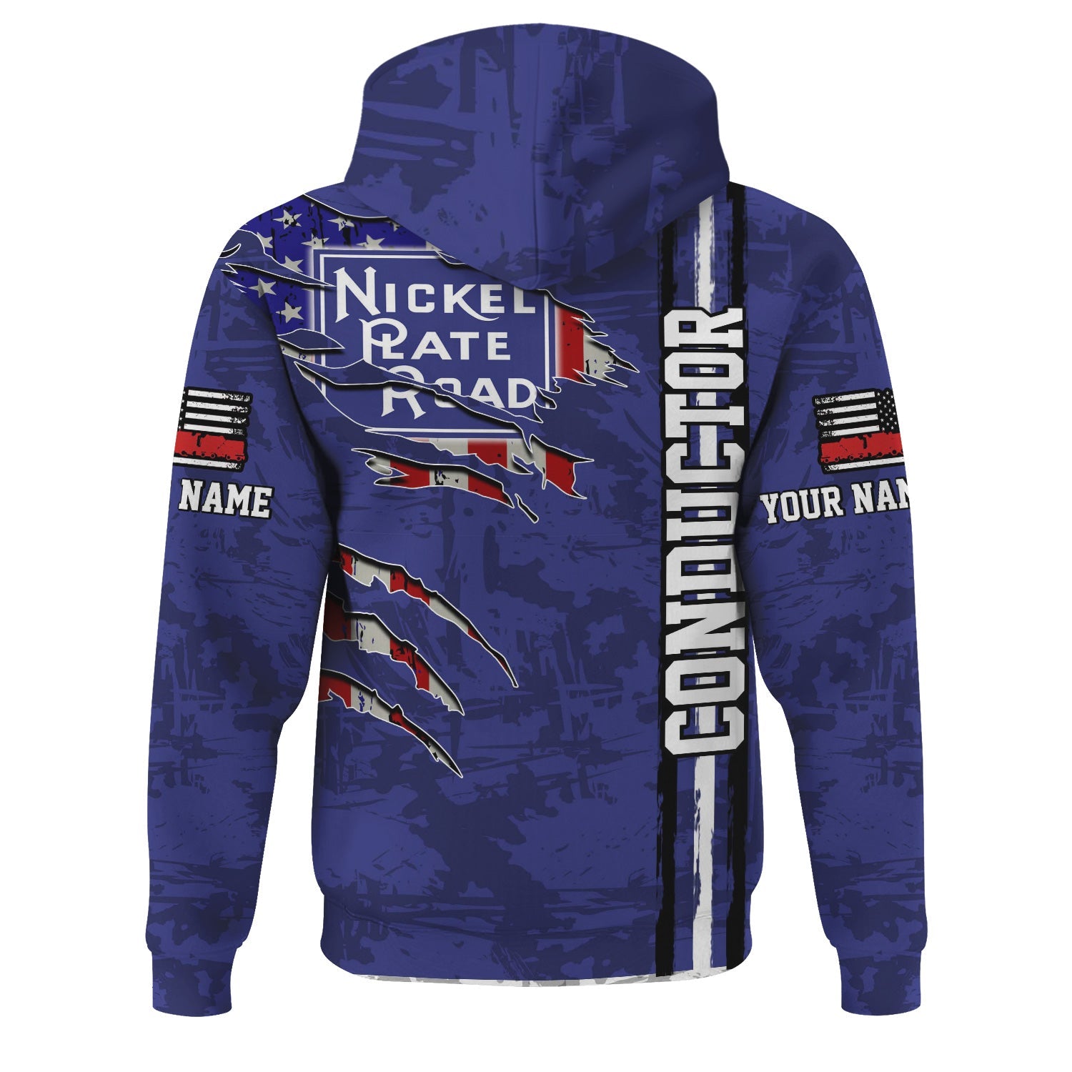 Railspirit Personalized New York, Chicago and St. Louis Railroad Hoodie USA Flag Claw Art with Custom Job Nickel Plate Road Train Zip Up Hoodie