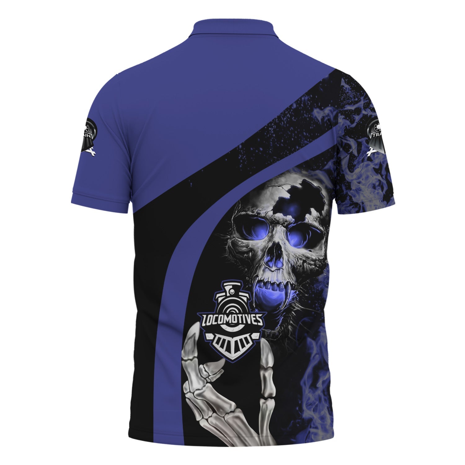 Railspirit Personalized New York, Chicago and St. Louis Railroad Polo Shirt Flame Skull Design Nickel Plate Road Train Shirt for Locomotive Fans