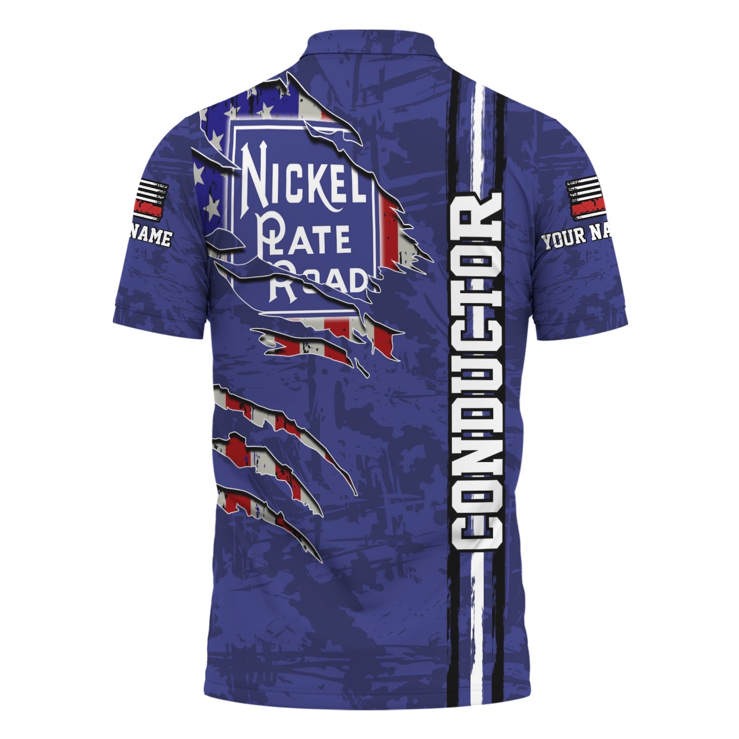 Railspirit Personalized New York, Chicago and St. Louis Railroad Polo Shirt USA Flag Claw Art with Custom Job Nickel Plate Road Train Shirt