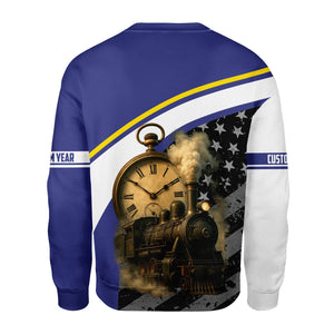 Railspirit Personalized New York, Chicago and St. Louis Railroad Sweatshirt Classic Steam Engine With Retro Pocket Watch Nickel Plate Road Shirt