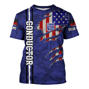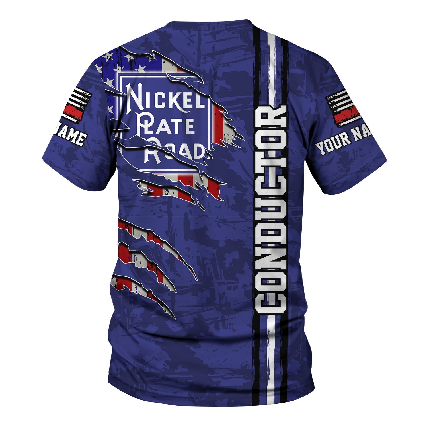 Railspirit Personalized New York, Chicago and St. Louis Railroad T-Shirt USA Flag Claw Art with Custom Job Nickel Plate Road Train Shirt