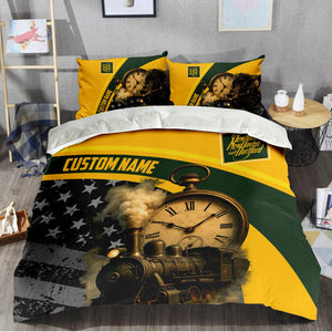 Railspirit Personalized New York, New Haven and Hartford Railroad Bedding Set Steam Engine With Retro Pocket Watch New Haven Railroad Bedding Set
