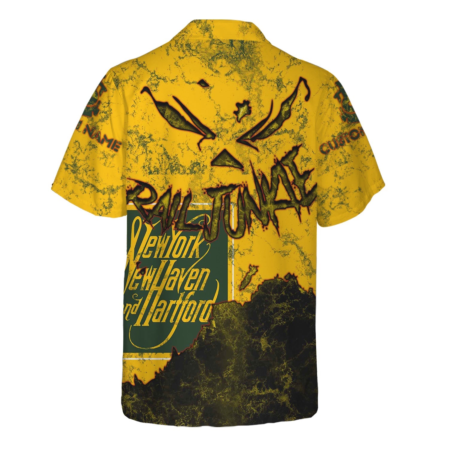 Railspirit Personalized New York, New Haven and Hartford Railroad Hawaiian Shirt Torn Graphic Style New Haven Railroad Train Shirt For Rail Junkie