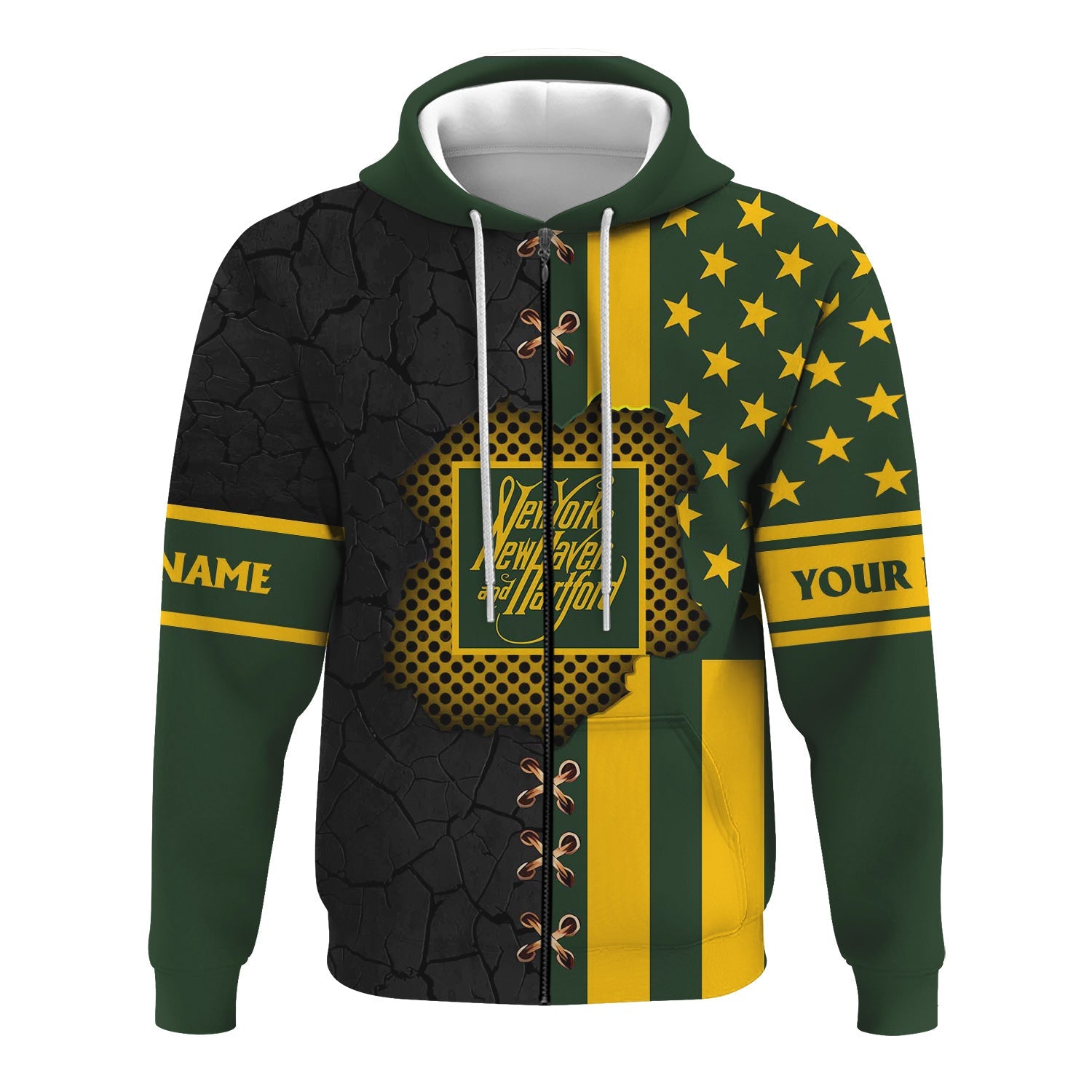 Railspirit Personalized New York, New Haven and Hartford Railroad Hoodie American Flag with Crack Effect New Haven Railroad Train Zip Up Hoodie