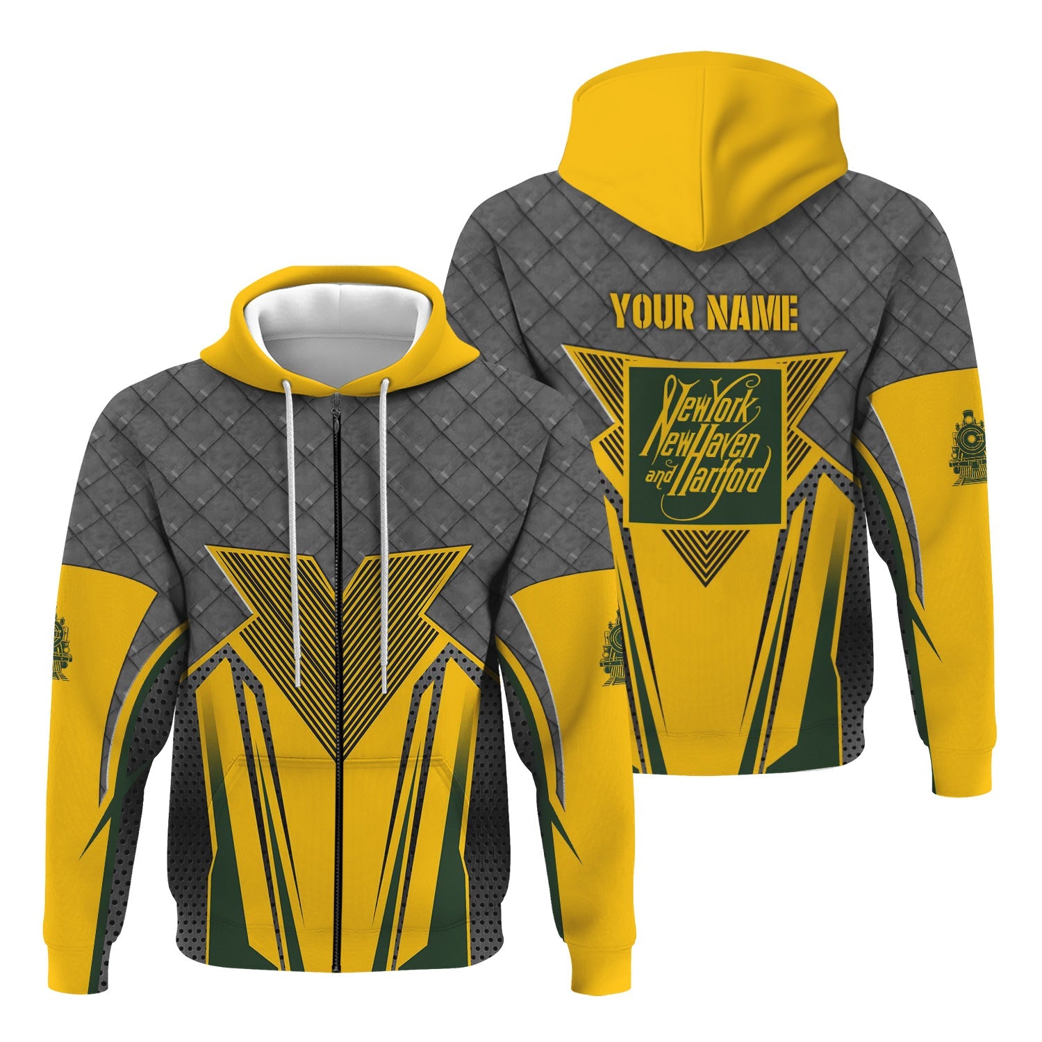 Railspirit Personalized New York, New Haven and Hartford Railroad Hoodie Rugged Steel Vibes New Haven Railroad Train Zip Up Hoodie All Over Print