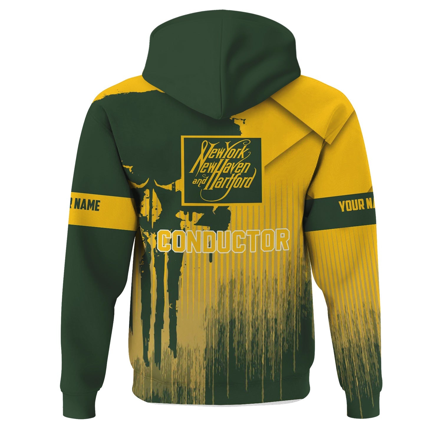 Railspirit Personalized New York, New Haven and Hartford Railroad Hoodie Skull Design with Custom Job New Haven Railroad Train Zip Up Hoodie