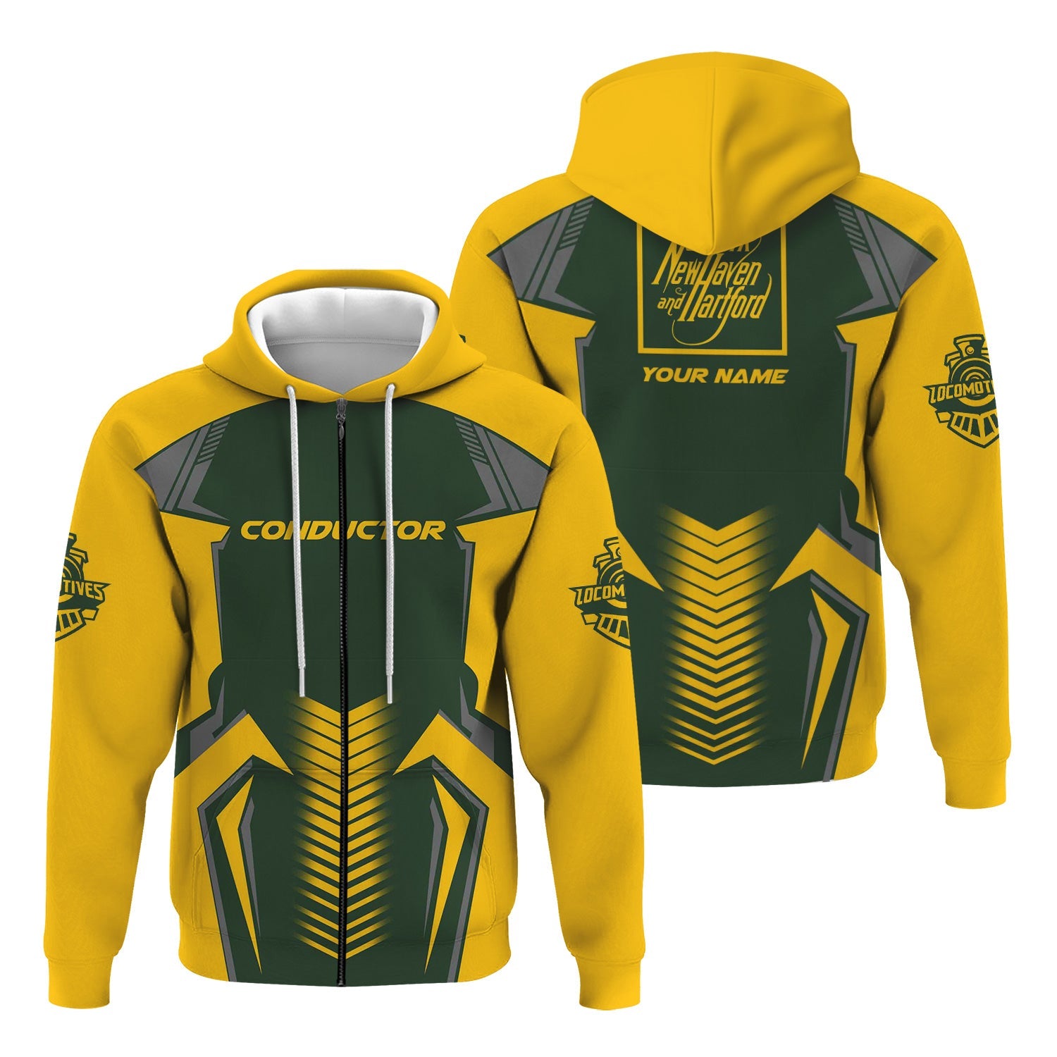 Railspirit Personalized New York, New Haven and Hartford Railroad Hoodie Standout Style with Custom Position New Haven Railroad Train Zip Up Hoodie