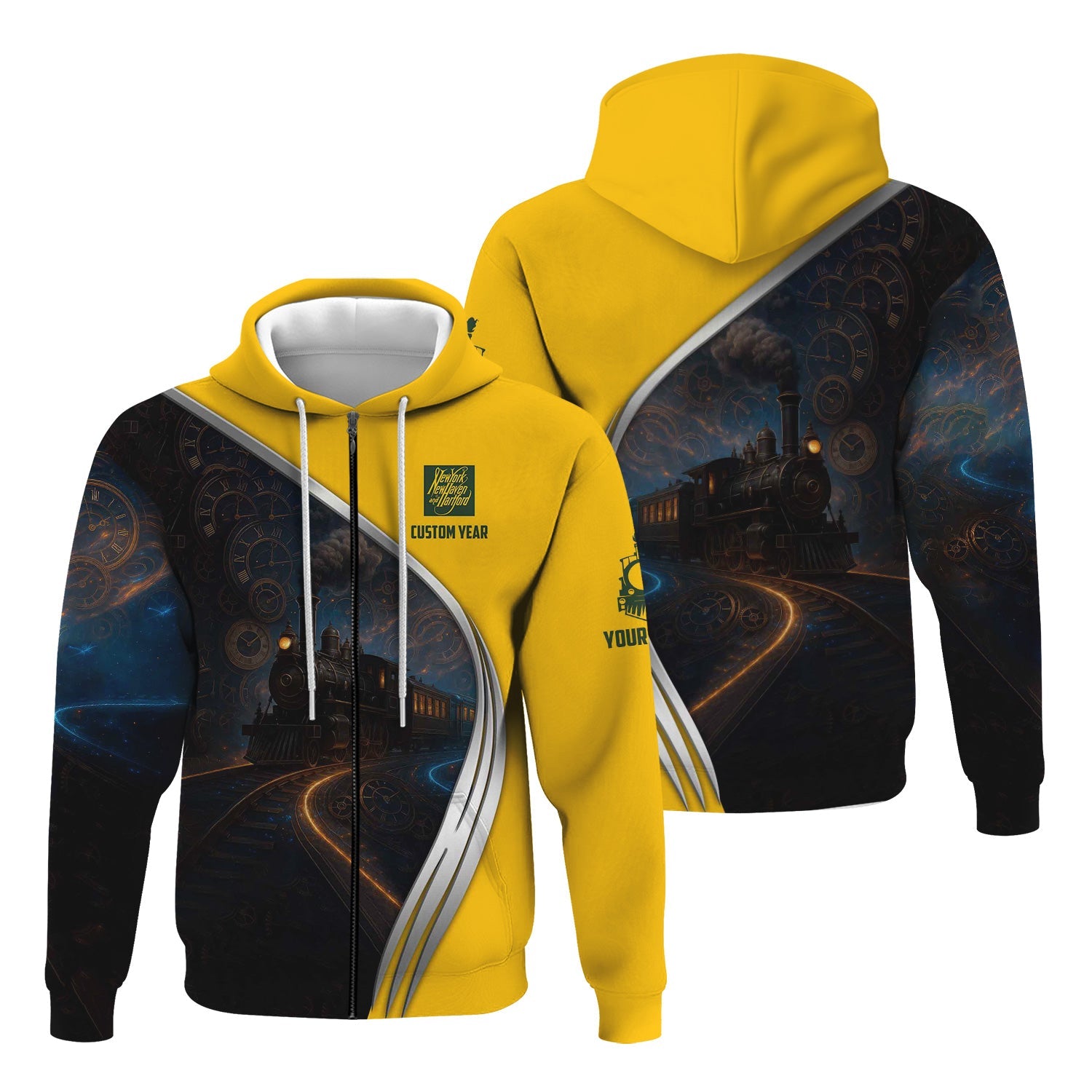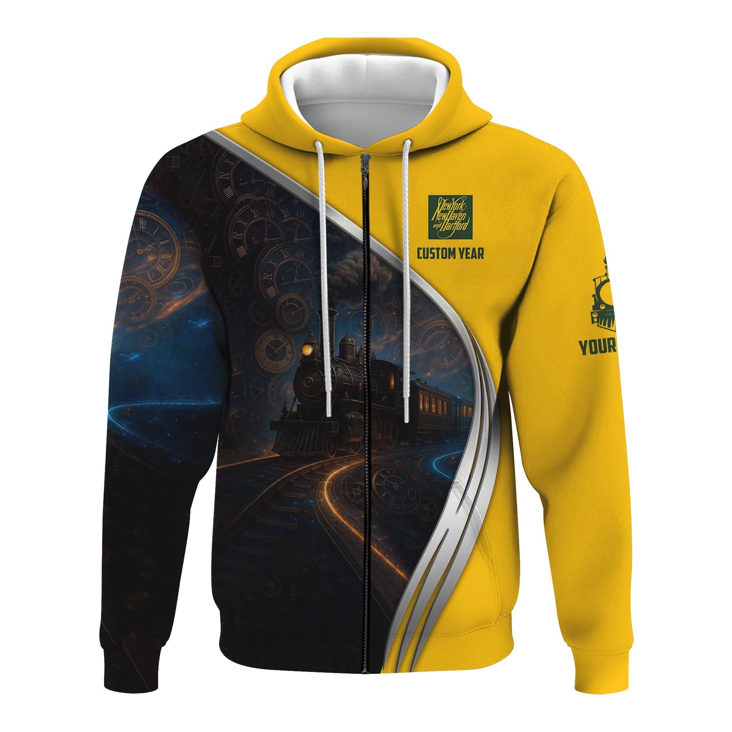 Railspirit Personalized New York, New Haven and Hartford Railroad Hoodie Steampunk Locomotive with Custom Year New Haven Railroad Train Zip Up Hoodie