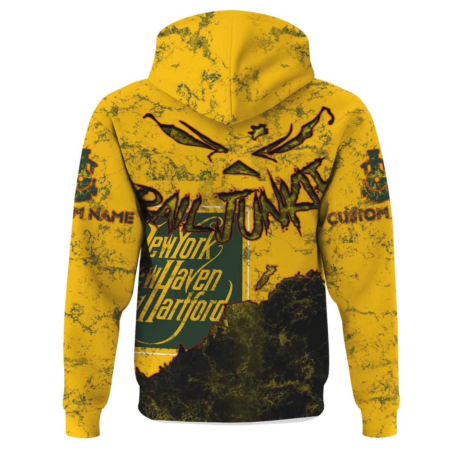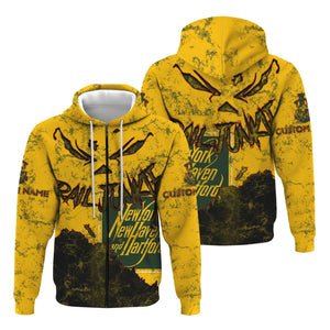 Railspirit Personalized New York, New Haven and Hartford Railroad Hoodie Torn Graphic Style New Haven Railroad Train Zip Up Hoodie For Rail Junkie