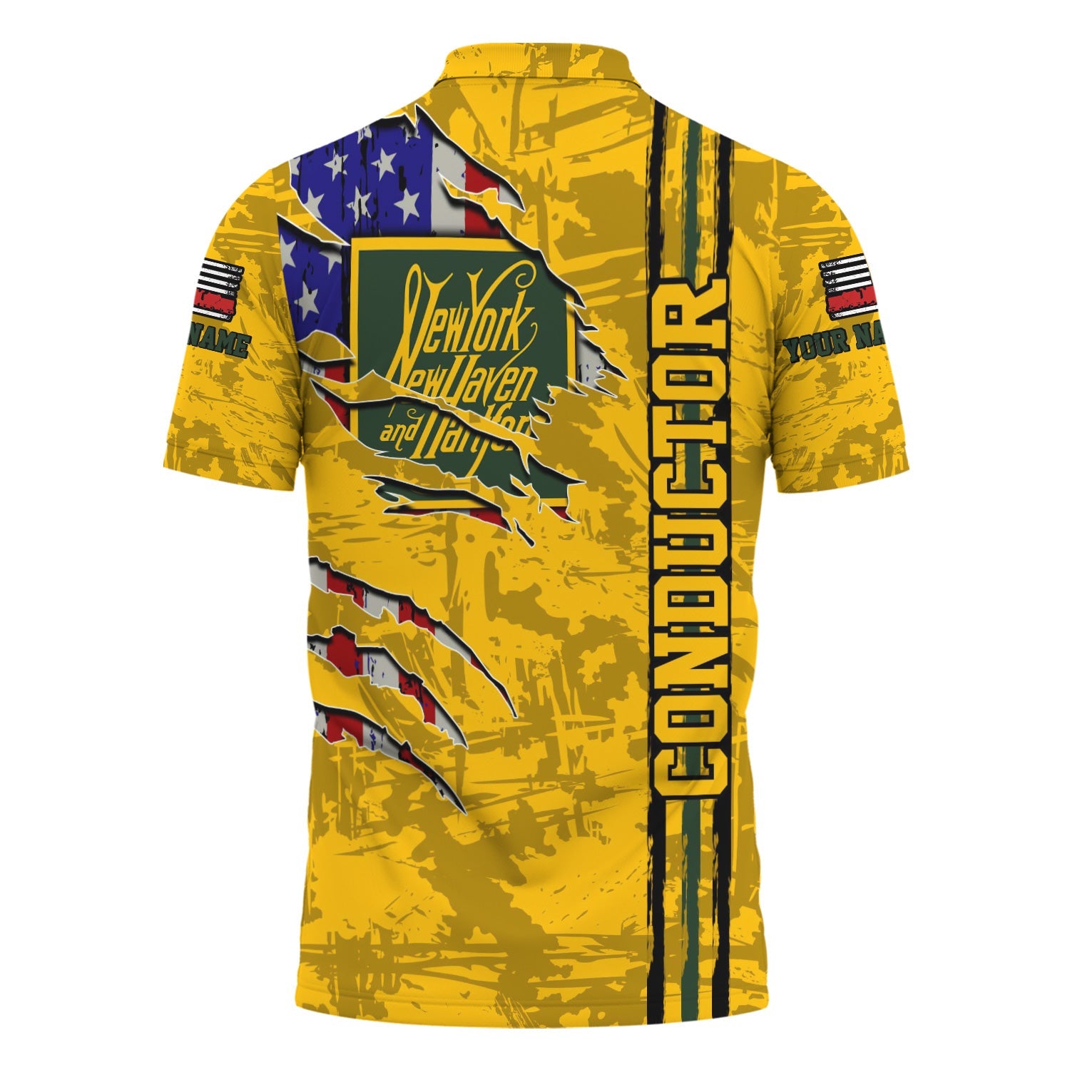 Railspirit Personalized New York, New Haven and Hartford Railroad Polo Shirt USA Flag Claw Art with Custom Job New Haven Railroad Train Shirt