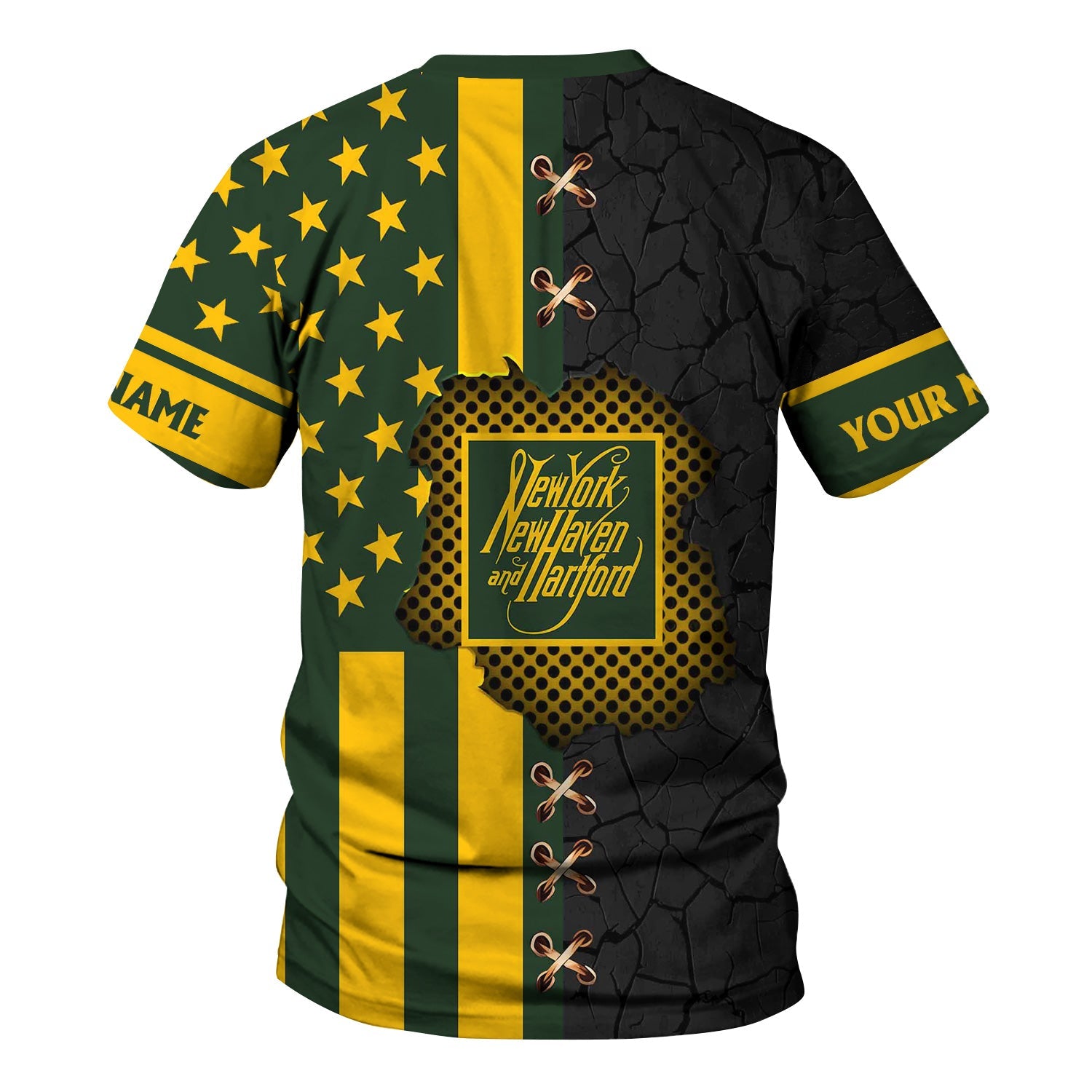Railspirit Personalized New York, New Haven and Hartford Railroad T-Shirt American Flag with Crack Effect New Haven Railroad Train Shirt