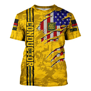 Railspirit Personalized New York, New Haven and Hartford Railroad T-Shirt USA Flag Claw Art with Custom Job New Haven Railroad Train Shirt