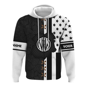 Railspirit Personalized Norfolk and Western Railway Hoodie American Flag with Crack Effect N&W Train Zip Up Hoodie