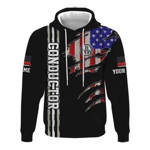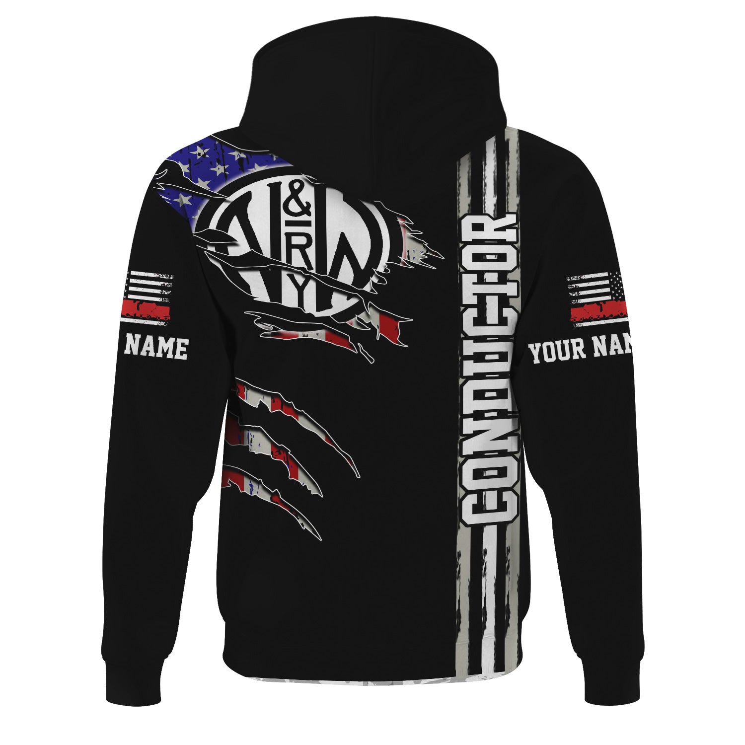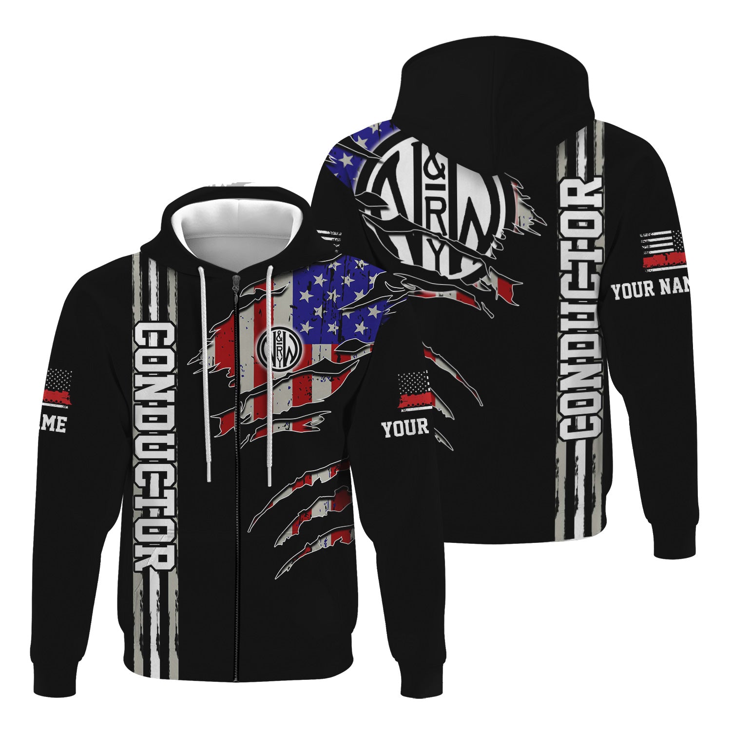 Railspirit Personalized Norfolk and Western Railway Hoodie USA Flag Claw Art with Custom Job N&W Train Zip Up Hoodie